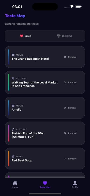 “I had no idea what to do this weekend — opened Benche and had a plan in ten minutes. It's the first app I open every Friday night.” — Sarah K. ⭐⭐⭐⭐⭐
