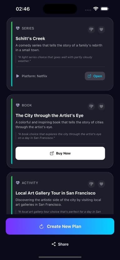 Your AI-powered daily recommendation assistant — in your pocket. Try it free!